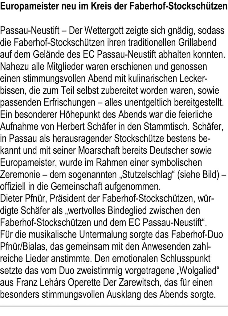 Das  heutige Stockschießen findet wie gewöhnlich um 14 Uhr in Neustift statt, bei stark bewölktem Himmel und Temperaturen um 15 Grad.